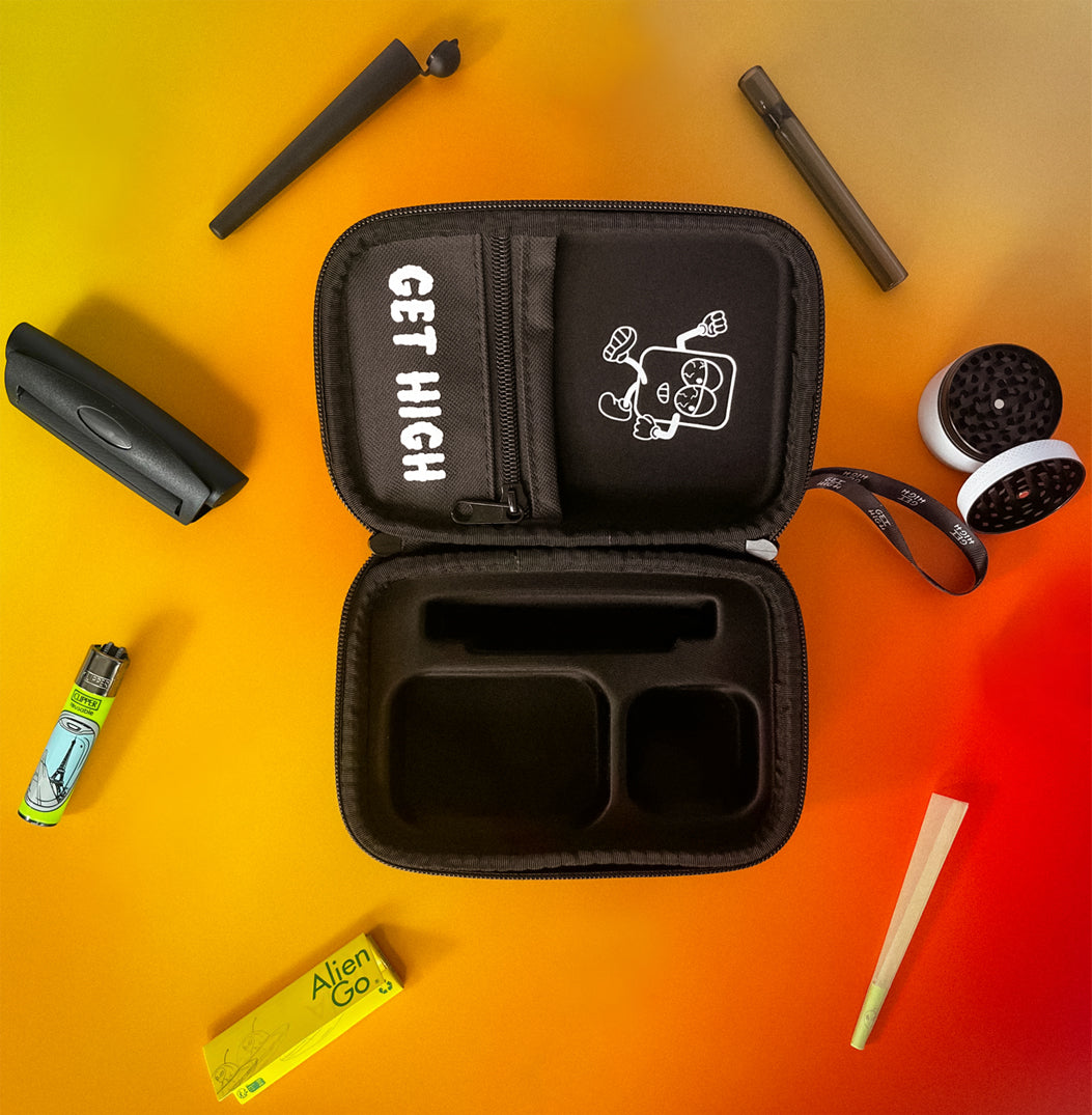 Este kit viene cargado con los infaltables que necesitas para disfrutar sin complicaciones: grinder, clipper, papeles, filtros, máquina de enrollar, hitter y porta-joint.
